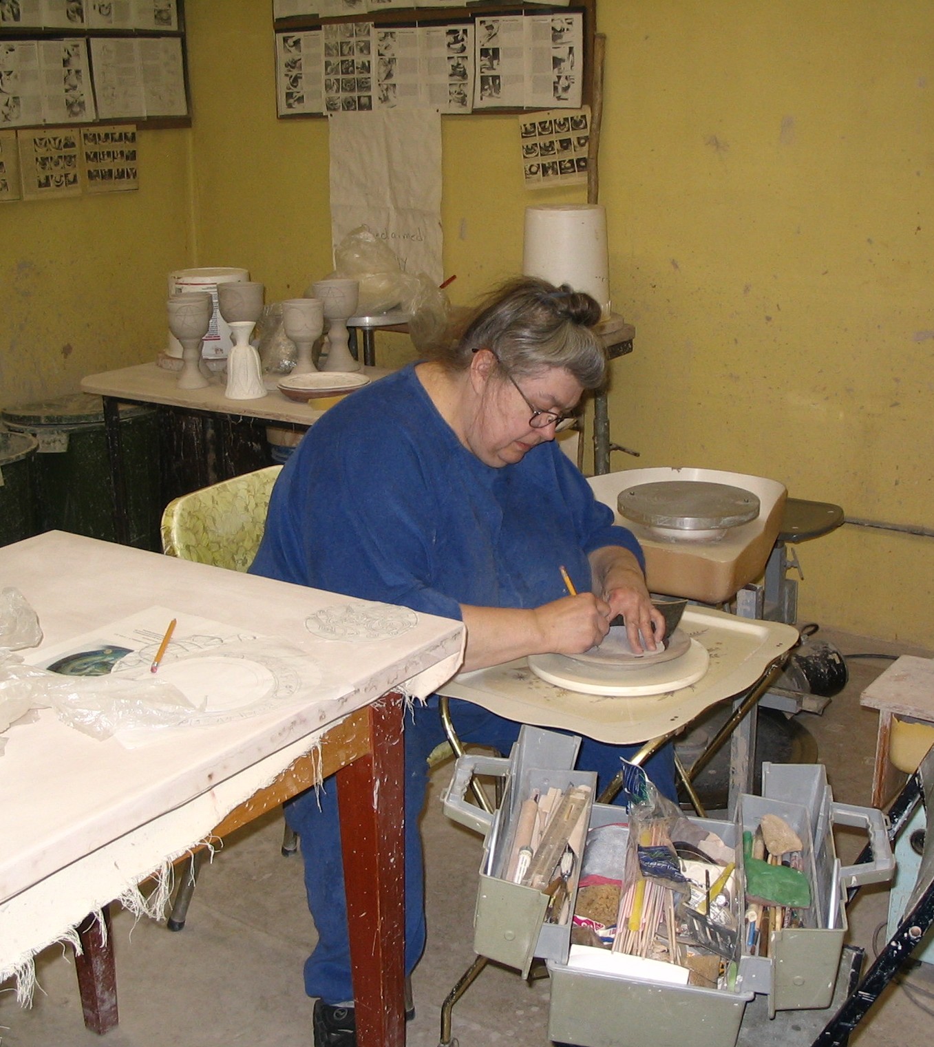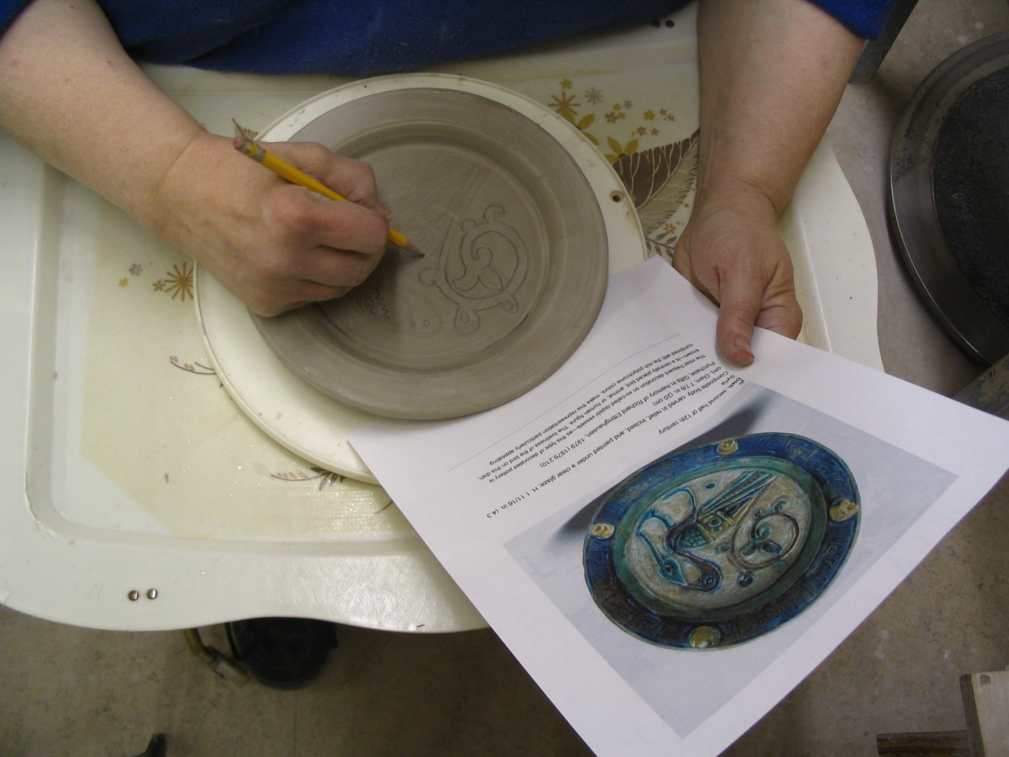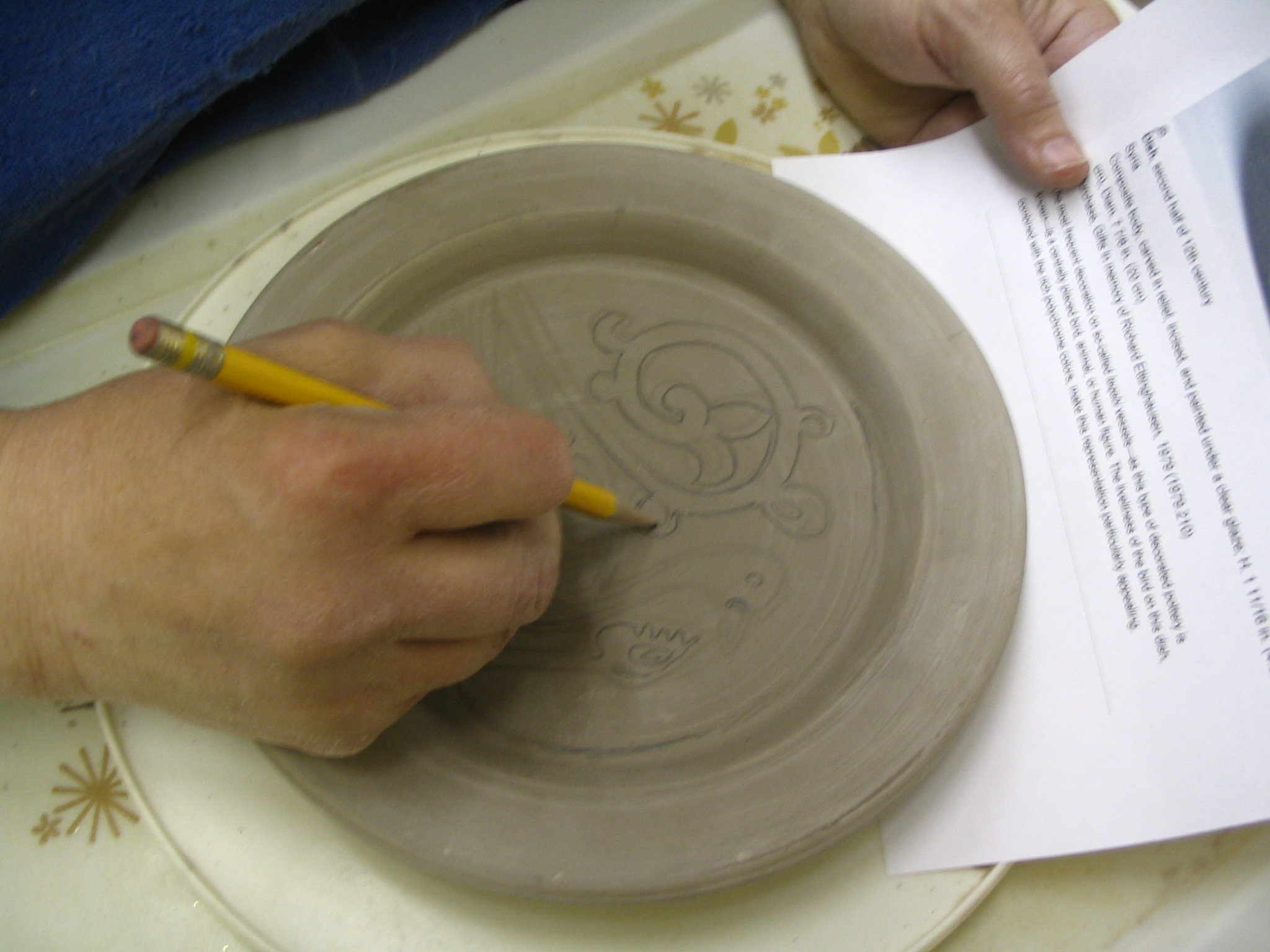 Carved plate before bisque fire